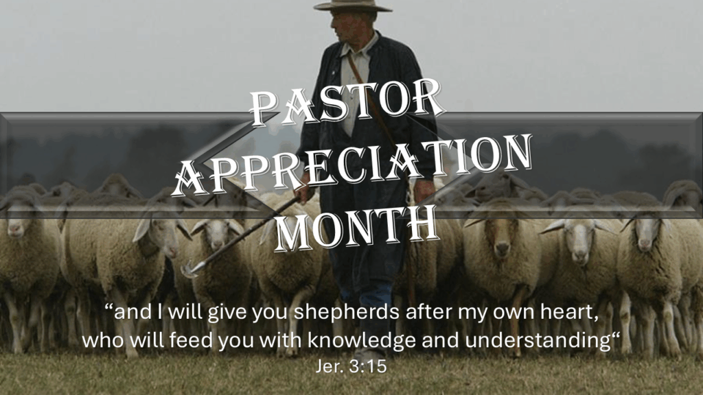 Why Pastor Appreciation – Pastor Appreciation Month exists to acknowledge the service work, dedication, and sacrifices of pastors in overseeing the flock of God by offering encouragement, support, and gratitude, which honors their calling, minimizes burnout, and helps build a healthy church culture. It is a way to fulfill a biblical obligation to support spiritual leaders and strengthen their ministry (I Thess. 5:16).